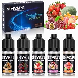 E Liquid 5x10ml,Vape Liquid for E Cigarettes Starter Kit/Vape Pen/Smok,SIMVAPE Vape Juice 70% VG/30% PG eliquid,E Juice…