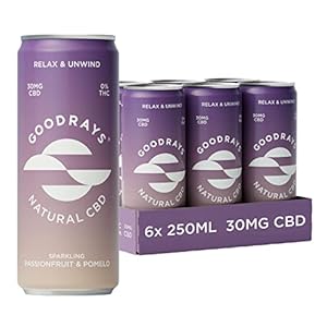 Goodrays – 30mg CBD Drink – 6 x 250ml Cans – Passionfruit & Pomelo – Natural Flavours, Low Calorie, Vegan – High…