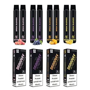 Vape without nicotine, pack of 8, Bosspuff disposable e-cigarette, e-cigarette without nicotine and tar, 600 puffs (mango ice/grape ice/peach ice/banana ice)