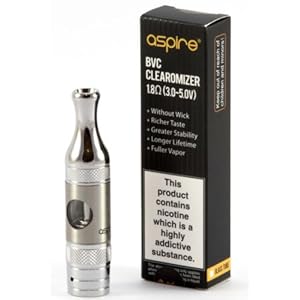Aspire ET-S BVC Clearomizer Tank Glassomizer Atomiser (Glass Tube Version) 1.8 Ohm, Stainless Silver Color